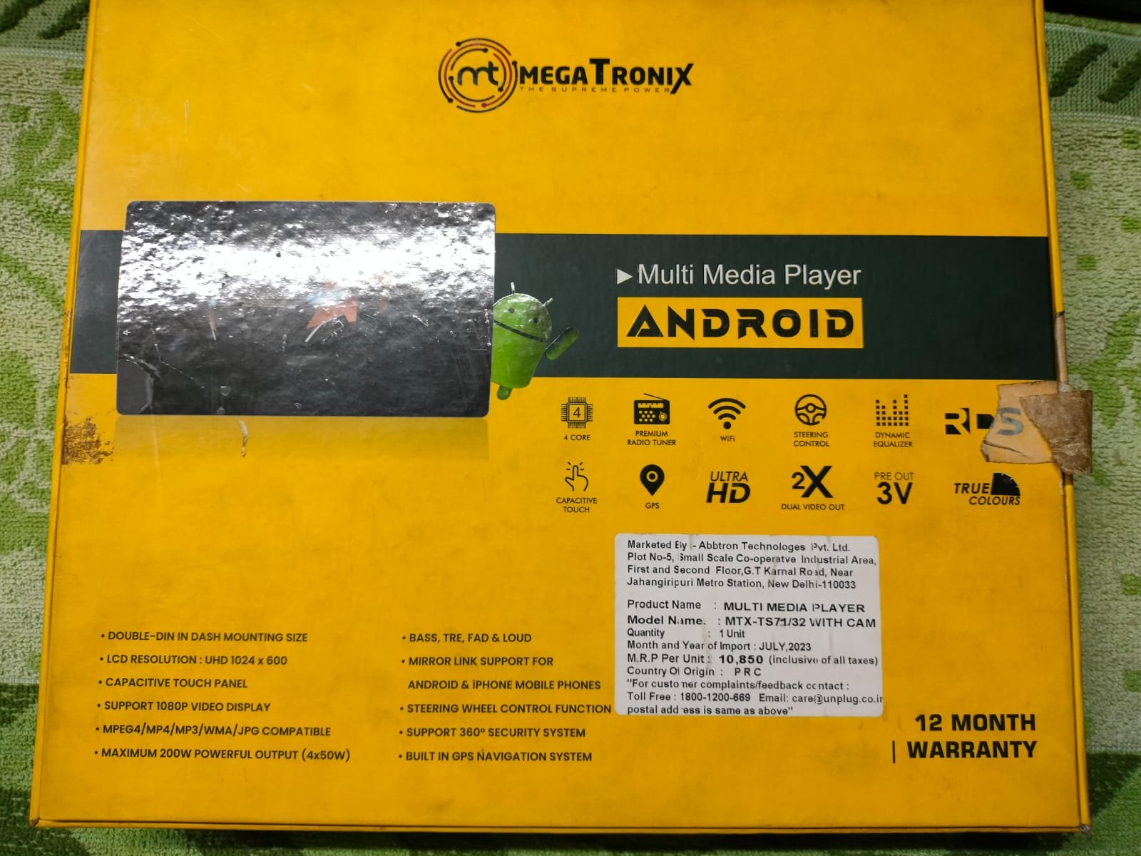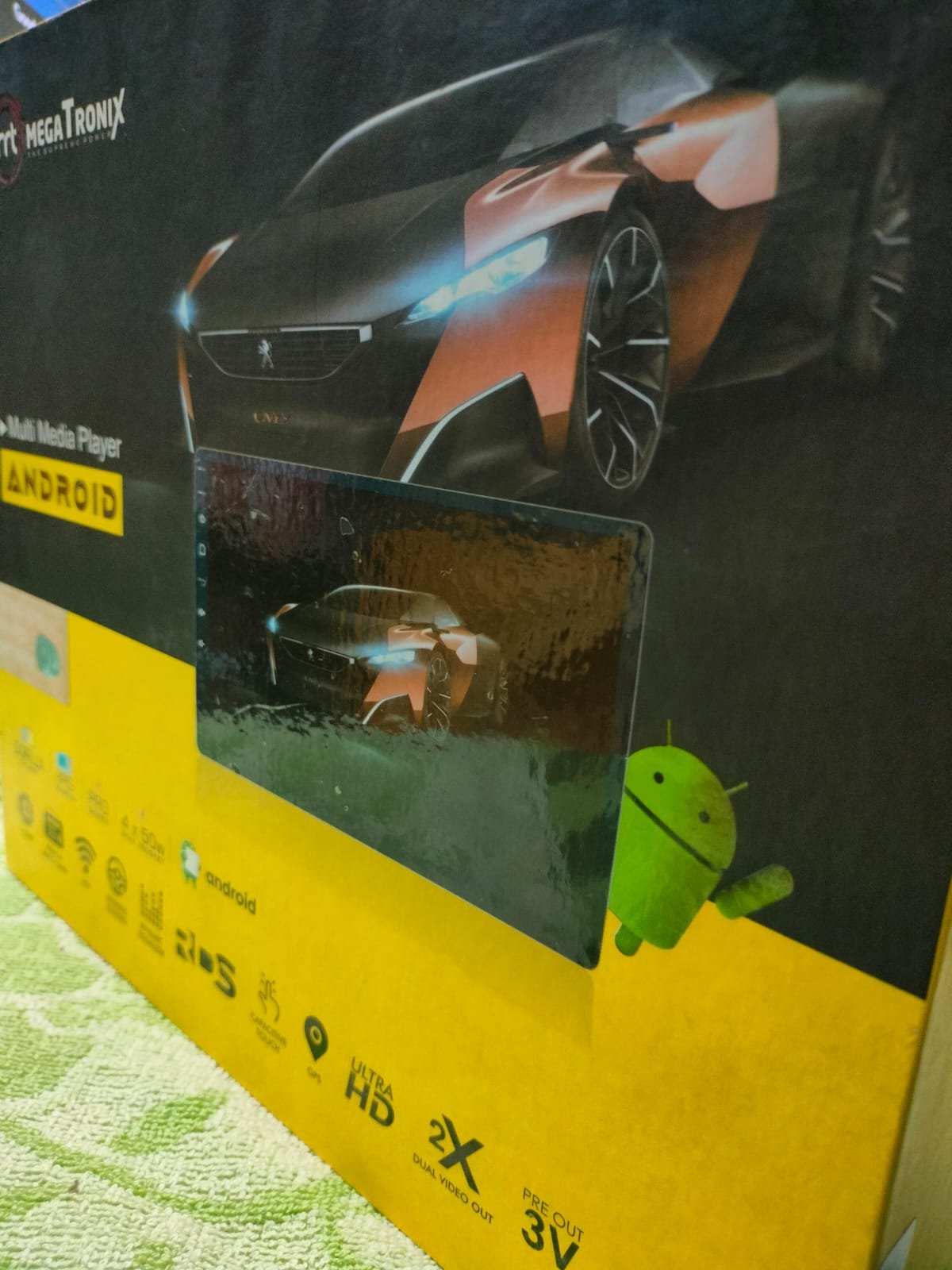 The product in the image is a Megatronix Android Multi Media Player for cars.